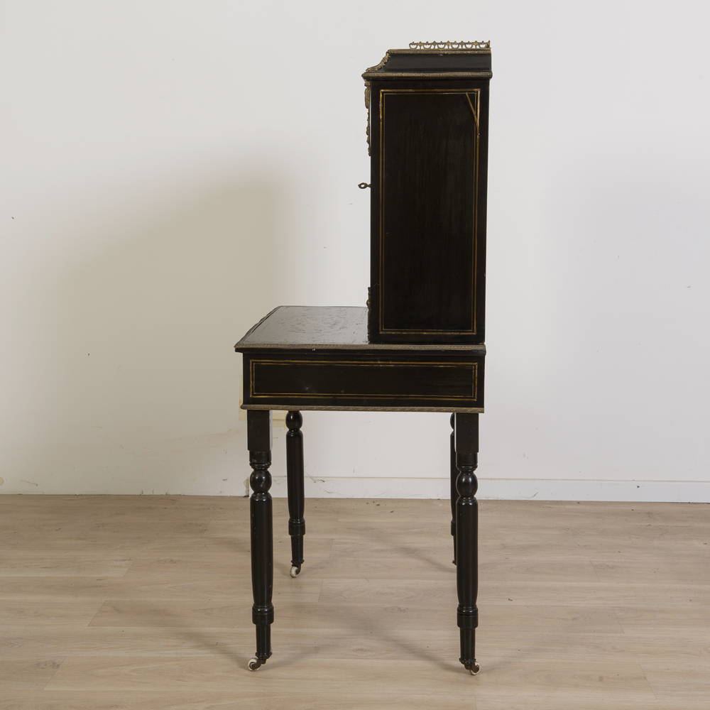 Bonheur du jour in legno ebanizzato con finiture in bronzo dorato