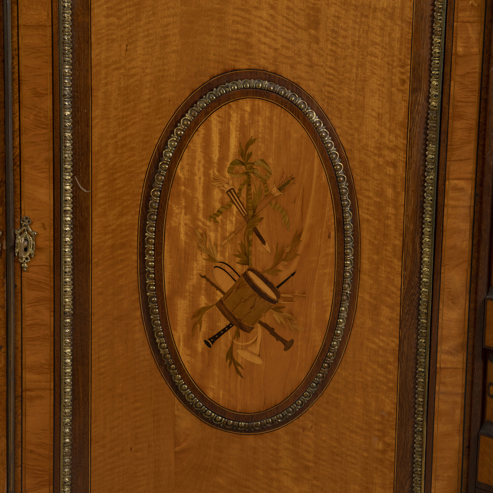 Servante in satinwood finemente intarsiata con finiture in bronzo dorato