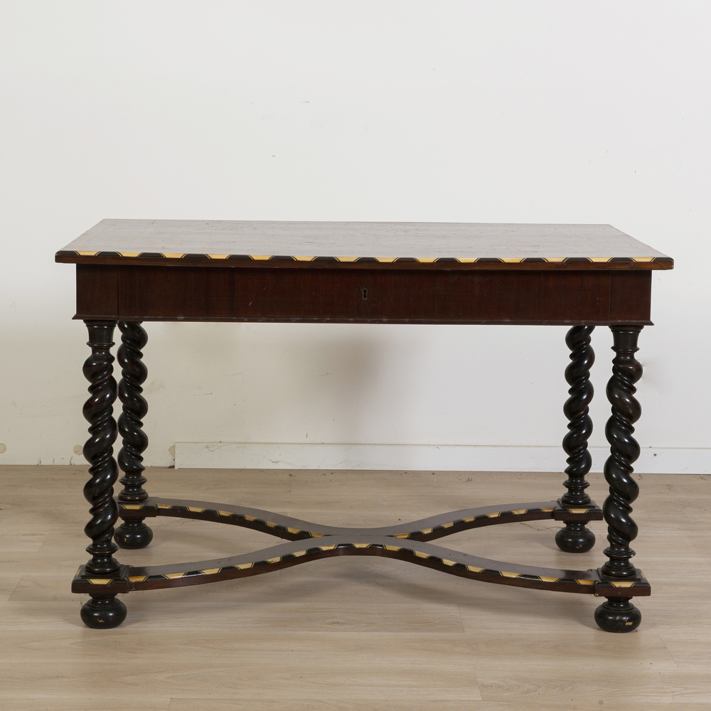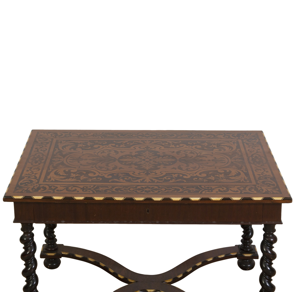 Tavolo scrittoio in noce finemente intarsiato