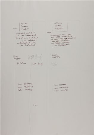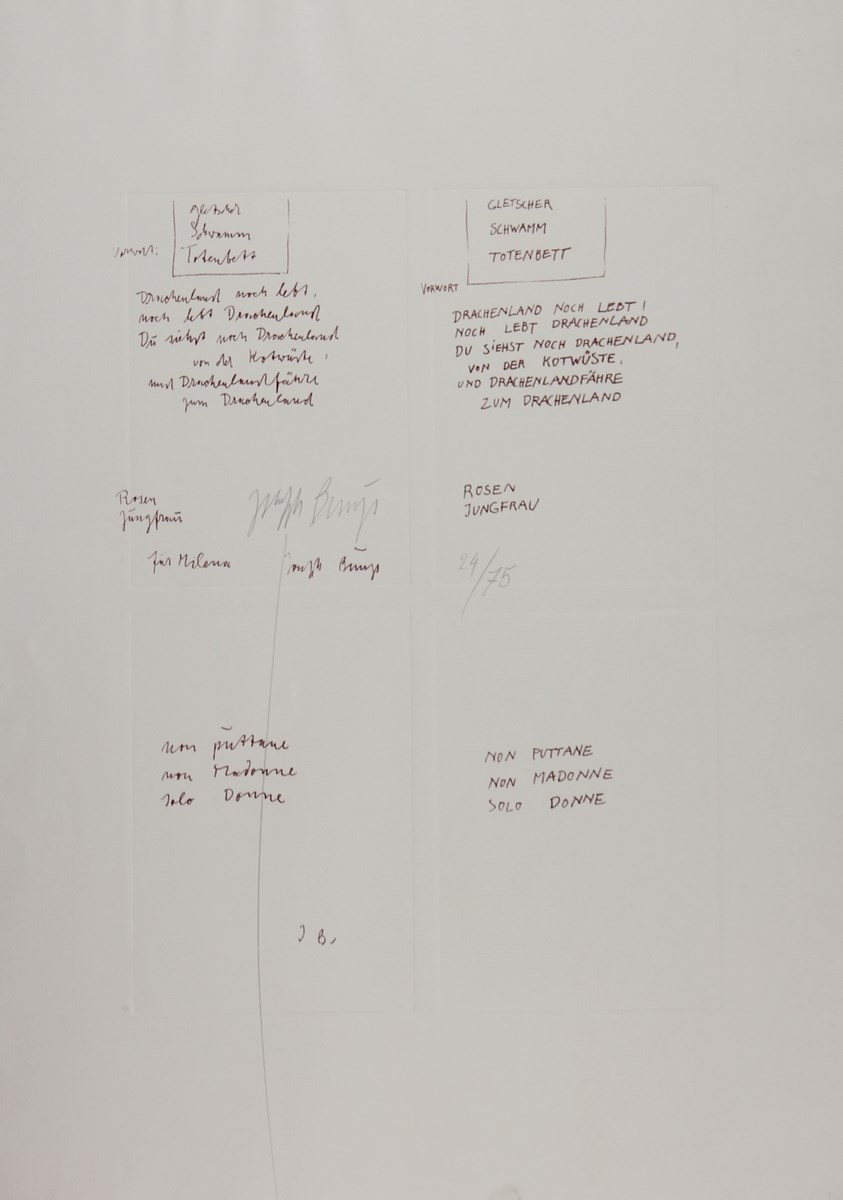 BEUYS JOSEPH (1921 - 1986) Senza titolo. Serigrafia. Cm 99,00 x 70,00. Misure lastra: 65x46,5 cm. Tir. 24/75 e firma al centro a matita. Leggerissimi aloni in basso.