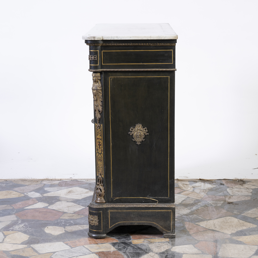Credenza in stile Boulle in legno ebanizzato con piano in marmo