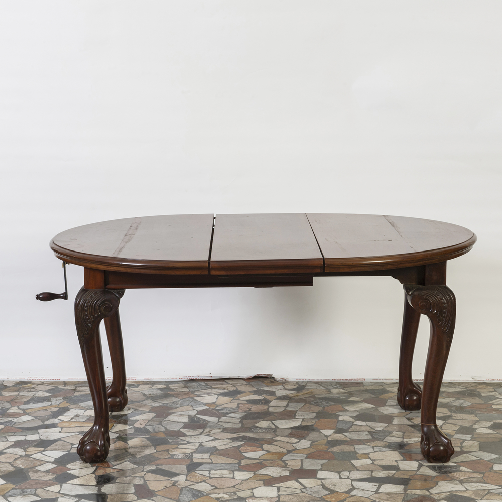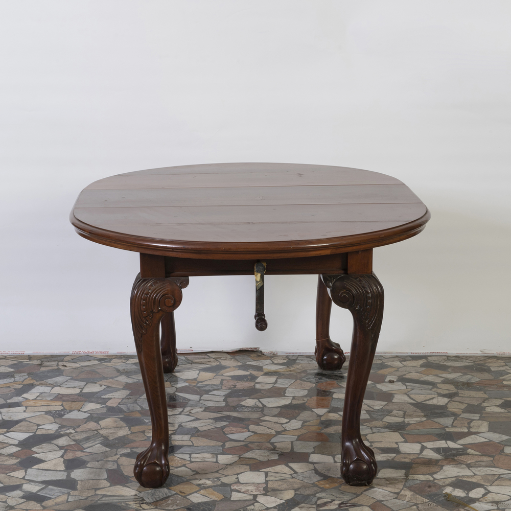 Tavolo allungabile telescopico in mogano con una prolunga