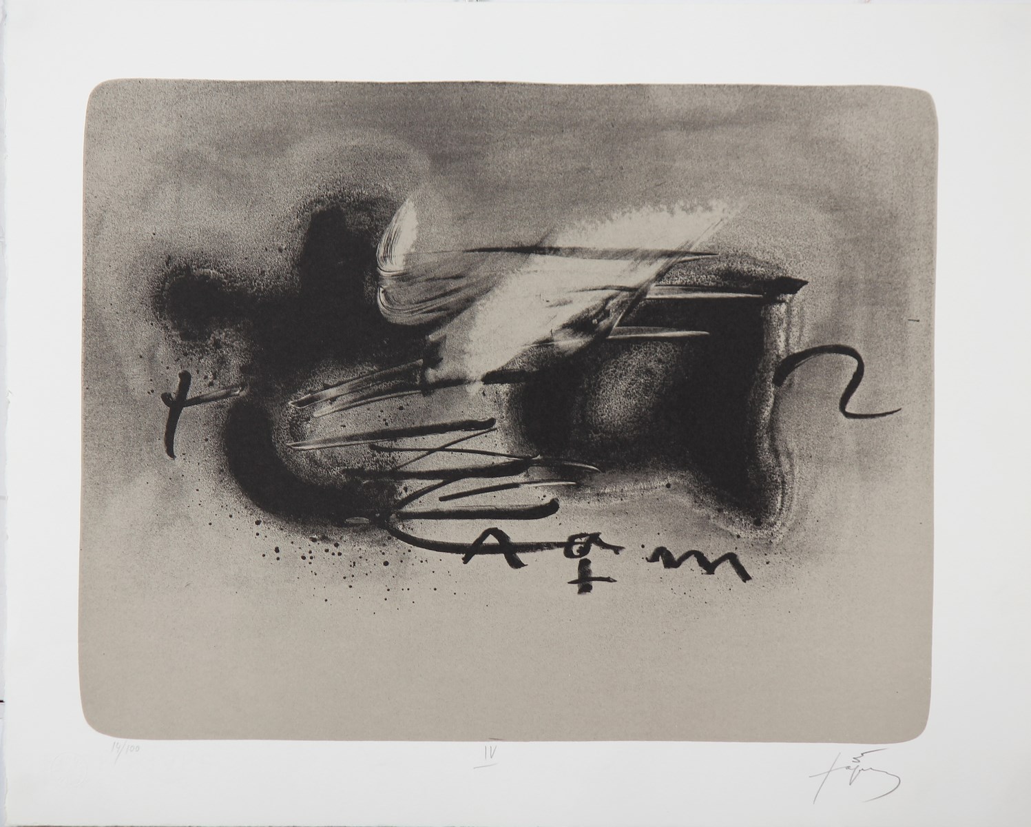 TAPIES ANTONI (1923 - 2012) IV. Litografia. Cm 46,50 x 58,00. Misure lastra: 37x48 cm.Tir. 14/100 , titolo e firma in basso. Timbro a secco in basso a sinistra.