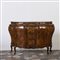 Credenza in noce con due ante e cassetti, fronte e fianchi mossi