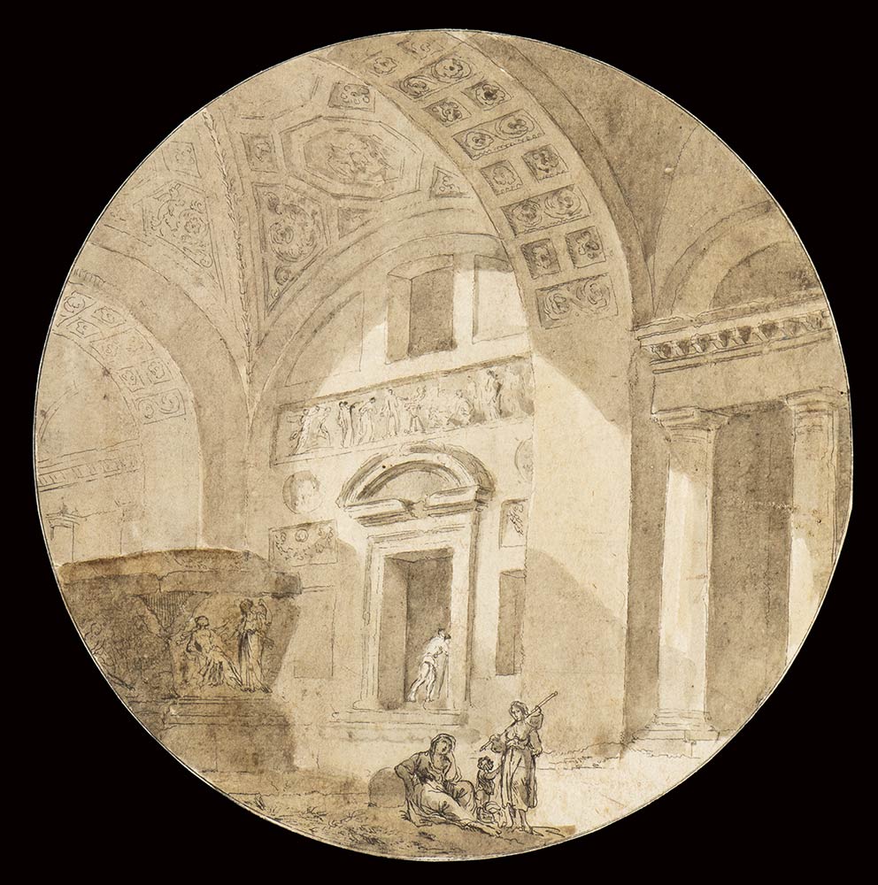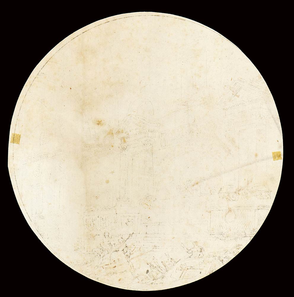 Inchiostro e acquerello su carta bruna, Ø cm. 18. Con cornice