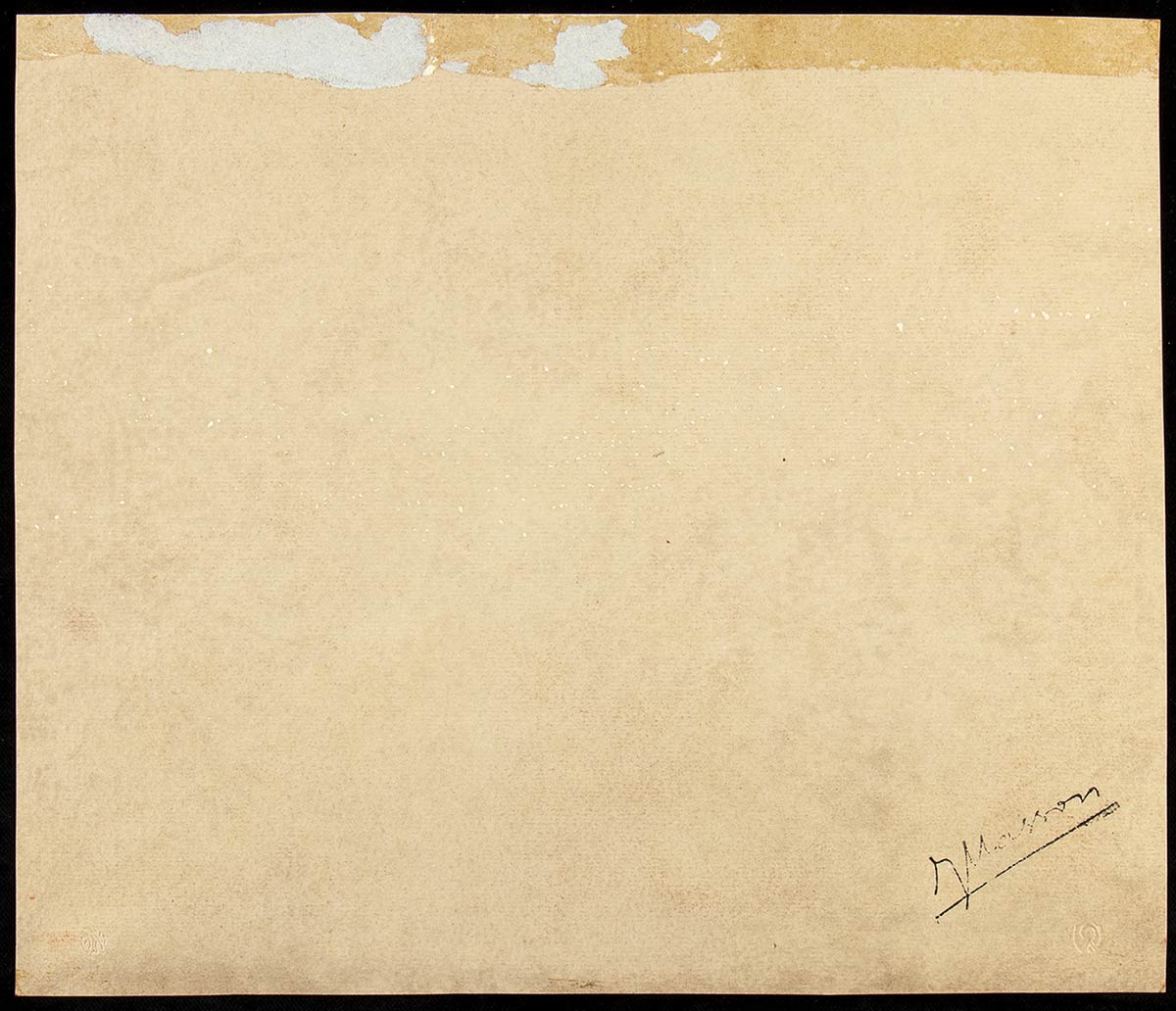 Il disegno reca in basso a sinistra e in basso a destra due timbri di collezione da sciogliere.