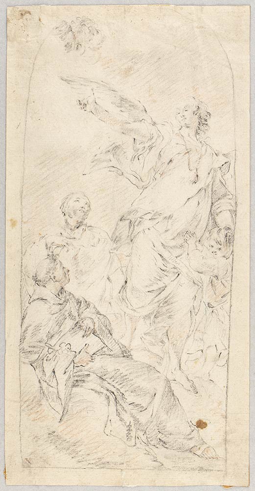 Il foglio presenta un'evidente relazione formale con la pala d'altare dello stesso soggetto presso la chiesa di San Vidal a Venezia, della quale potrebbe costituire il disegno preparatorio.