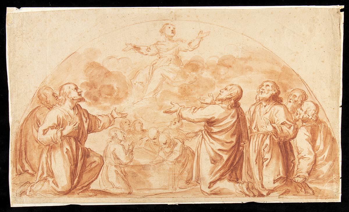Acquerello e sanguigna su carta bruna, cm. 24x40,5