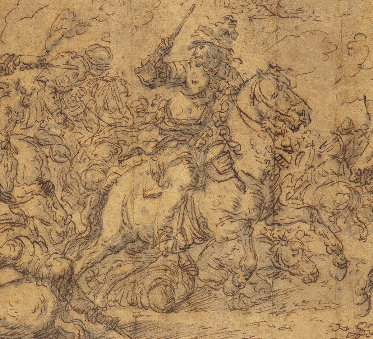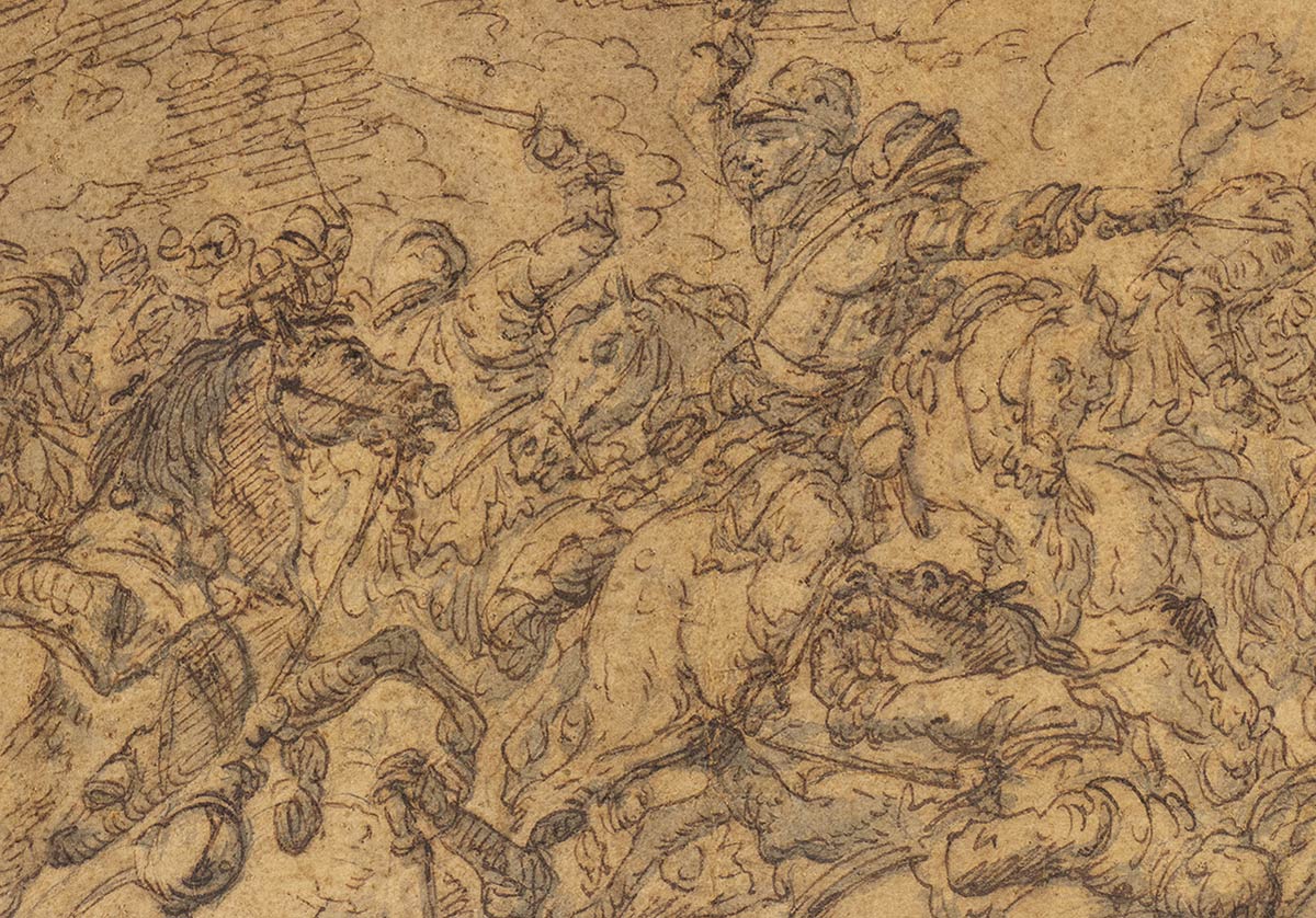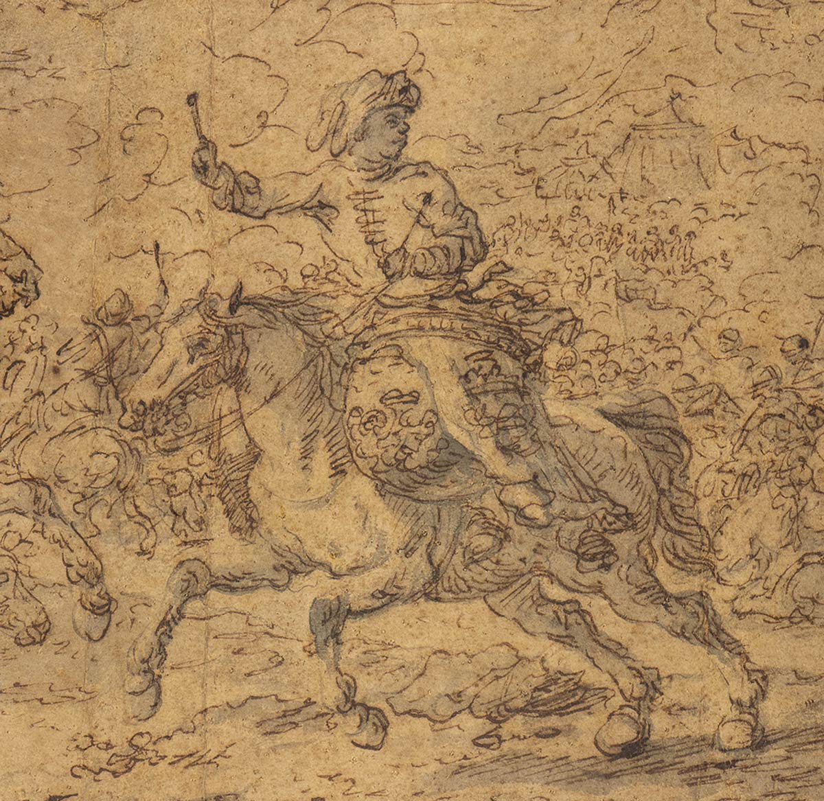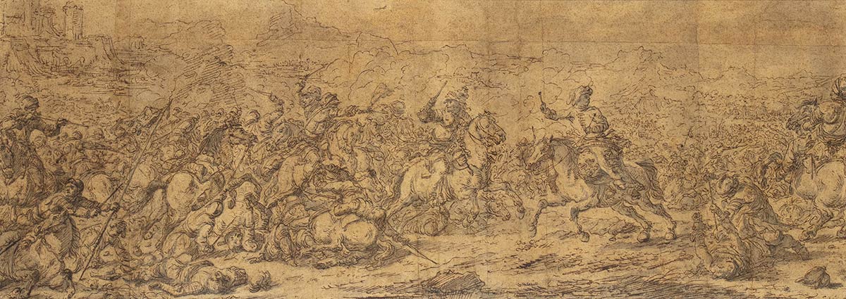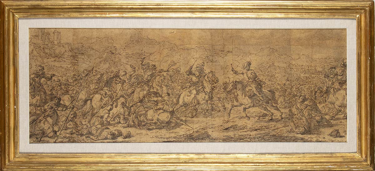 Inchiostro e acquerello su cartoncino bruno, cm. 41x114. Con cornice