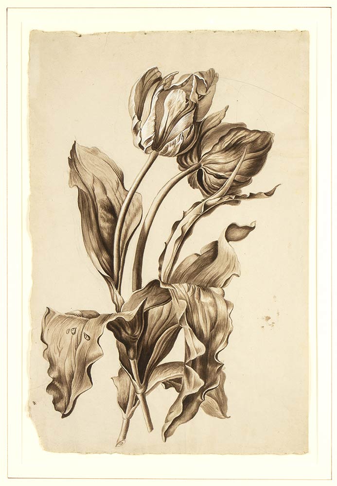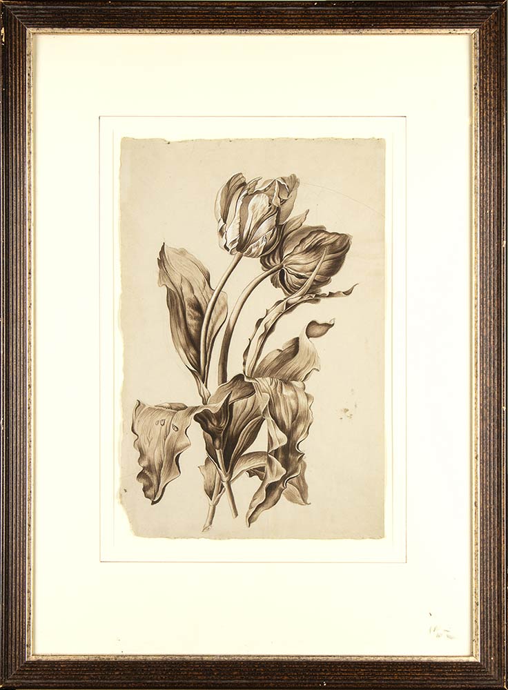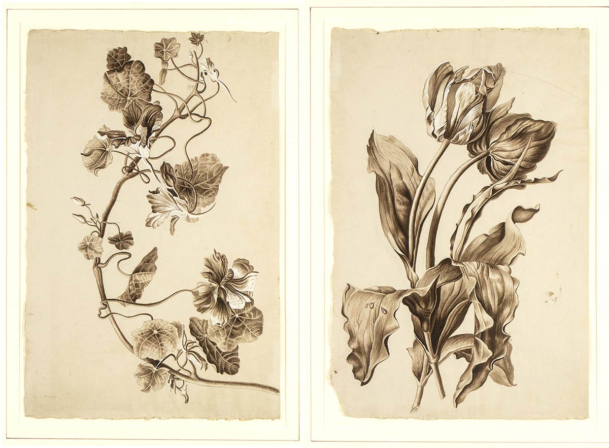 Coppia di disegni. a) Studio per tralcio di vite; b) Studio per tulipano.