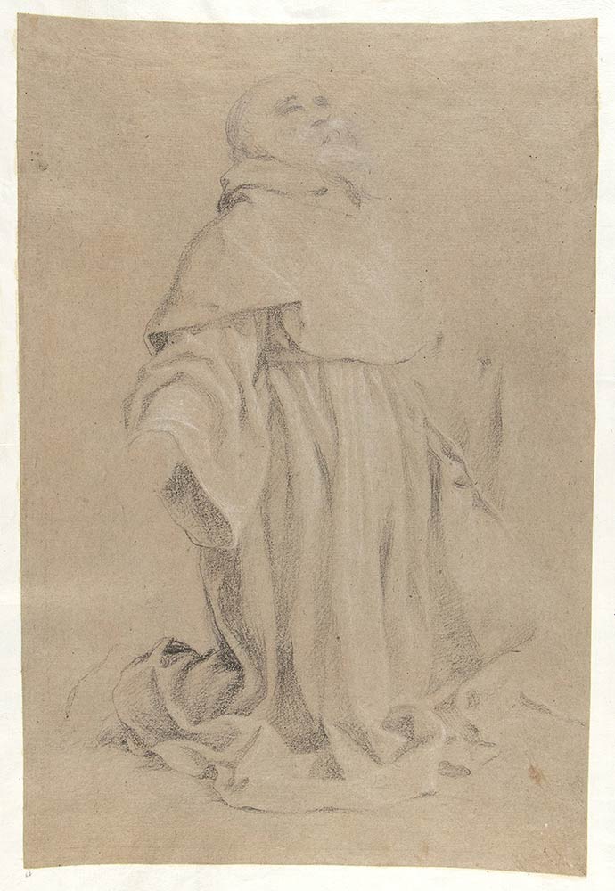 Carboncino nero su carta bruna vergellata applicata su carta bianca vergellata, cm. 41,5x28