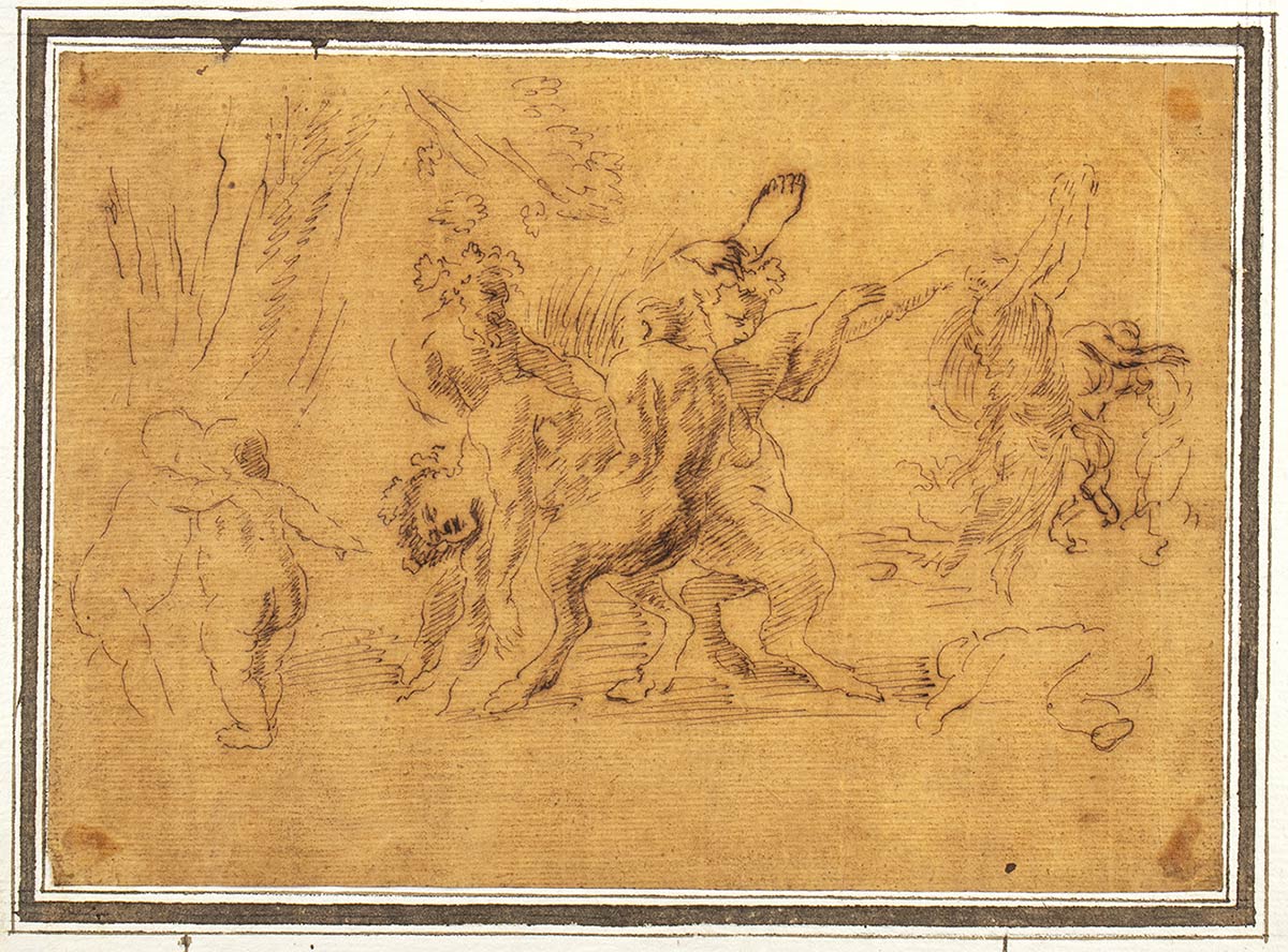 Il disegno riporta una montatura su cartoncino tipica dei disegni provenienti dalla celebre collezione Francesco Maria Niccolò Gabburri (1676 - 1742).
