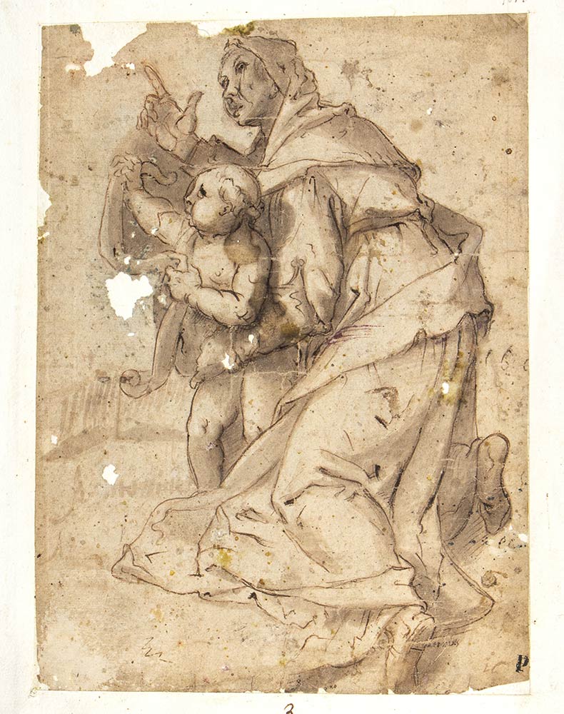 Il disegno reca sul recto il timbro della collezione Michelangelo Pacetti (Lugt n. 2057) e sul verso il tibro del Kupferstichkabinett Berlin.
