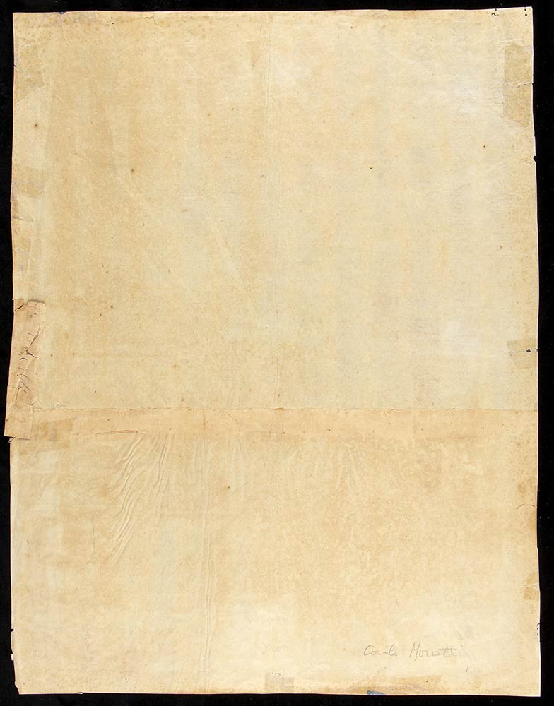 Matita rossa su due fogli di carta bruna vergellata e filigranata incollati, cm. 47x36,5, margini irregolari