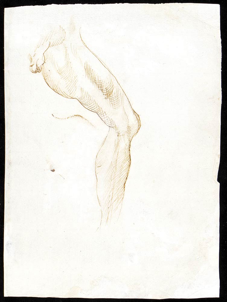 Recto: studio per una testa e un piede; verso: studio per una gamba.