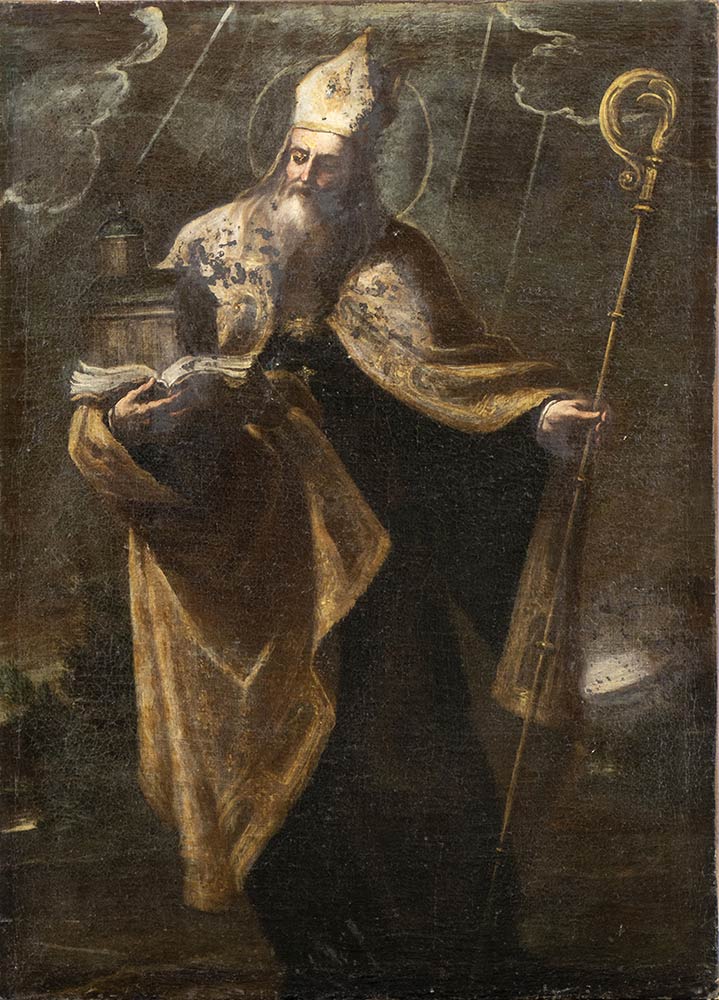 San Vescovo con libro e modello di chiesa (San Benedetto da Norcia?)
