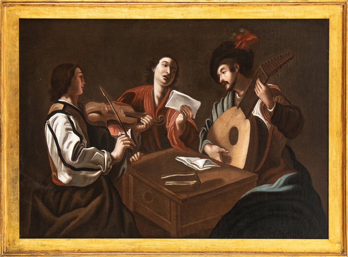 Concerto con suonatore di liuto, suonatore di violino e cantante