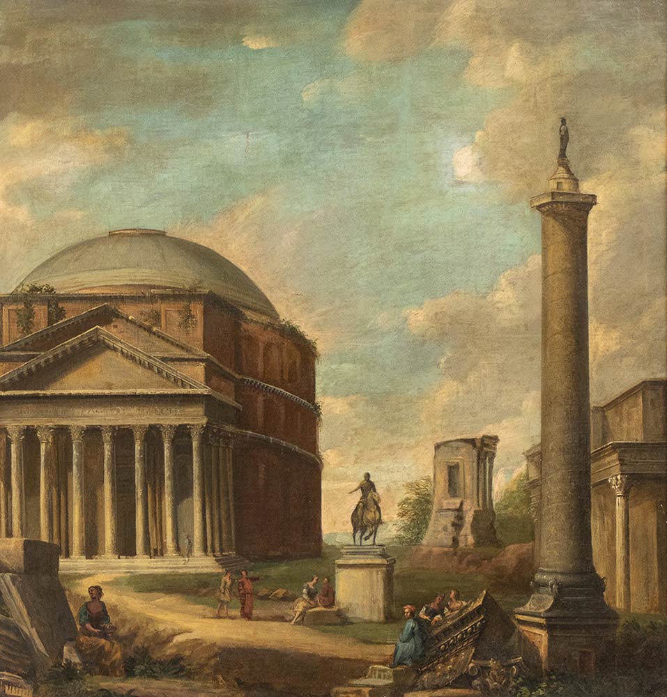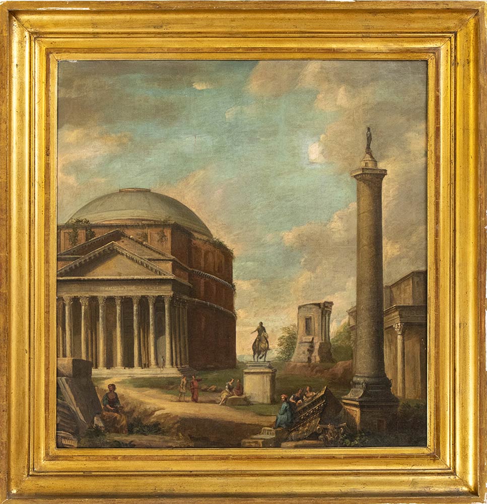 Capriccio architettonico con colonna Antonina, statua equestre di Marco Aurelio e Pantheon