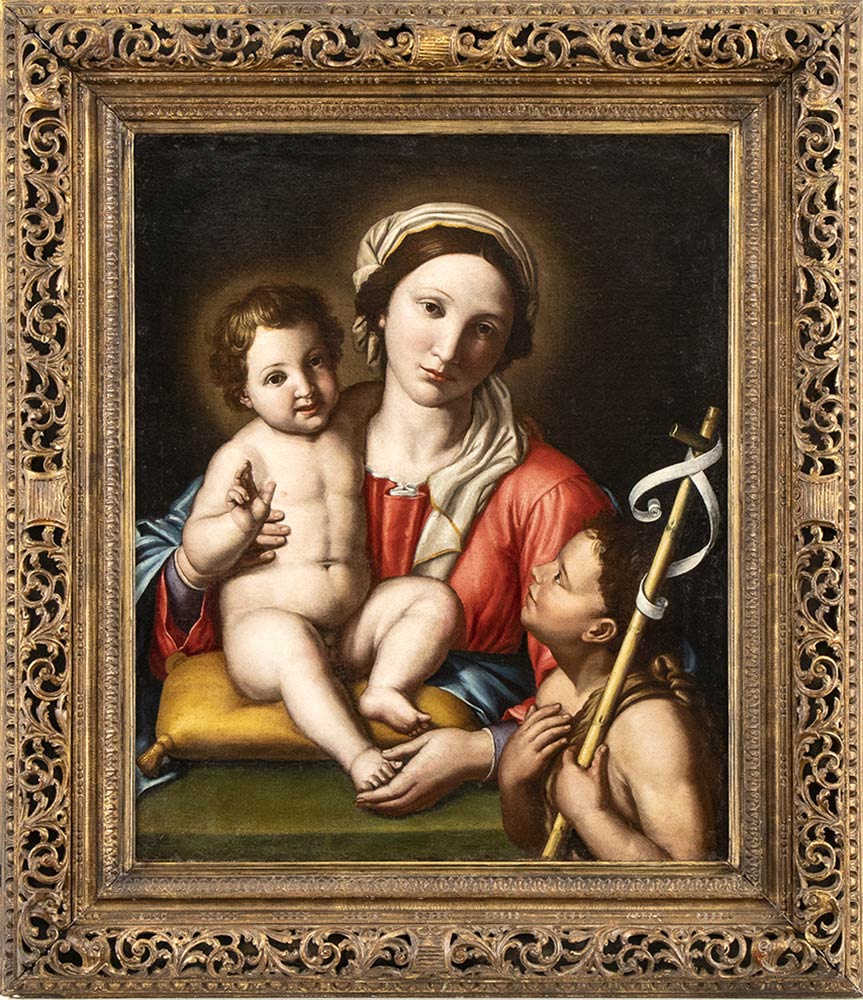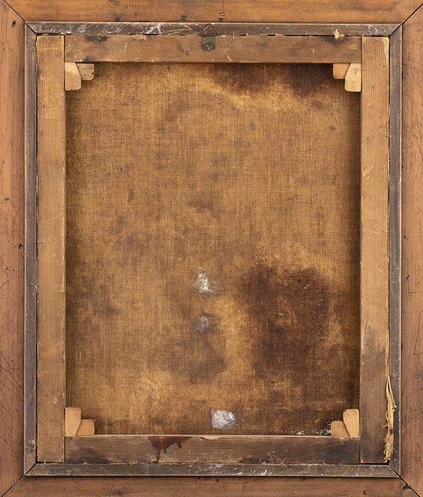 Olio su tela, cm. 75,5x60. Con cornice antica lavorata a giorno
