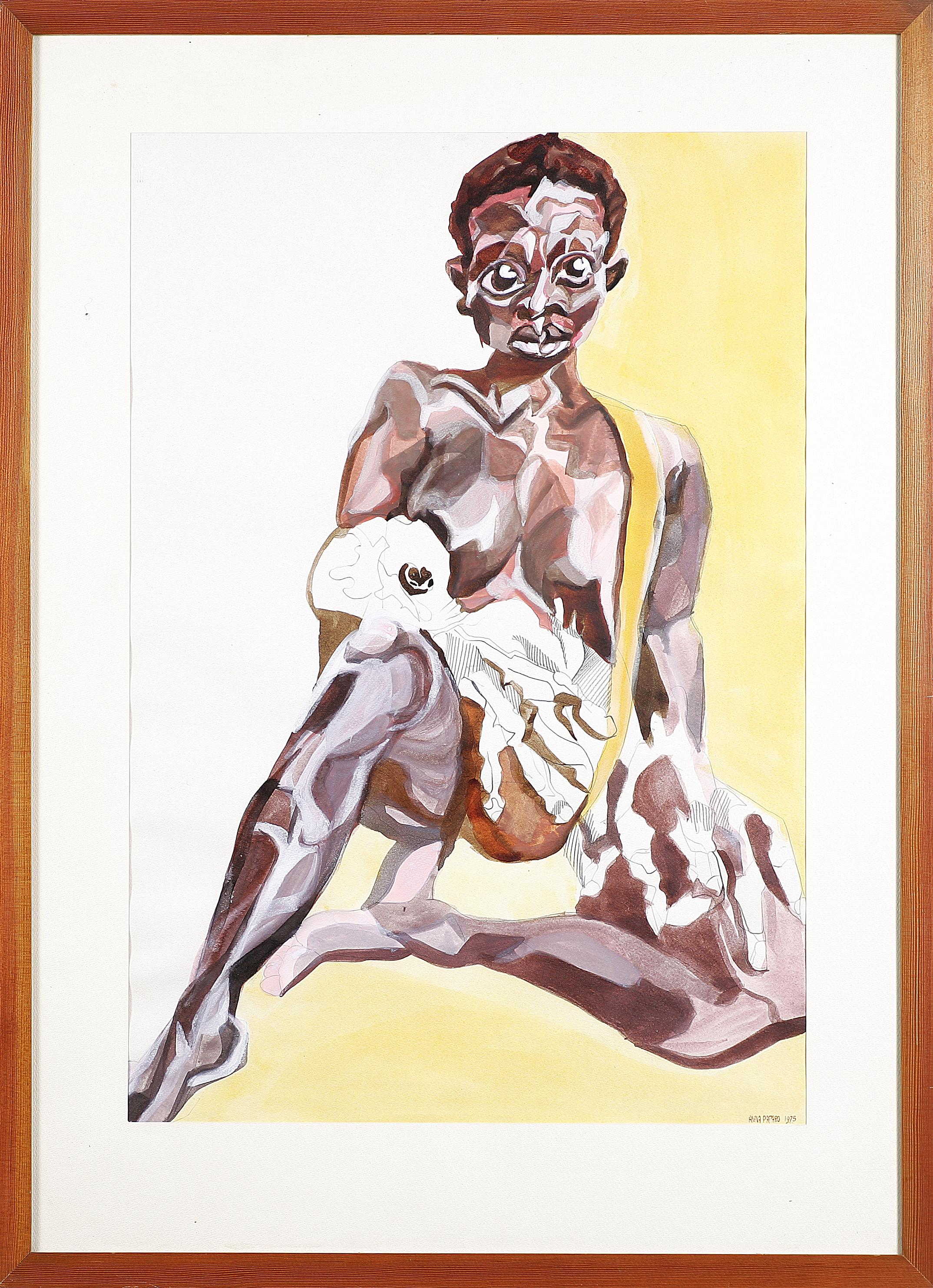ANONIMO Senza titolo. 1975. Tecnica mista su carta. Cm 47,00 x 67,00. Firma e anno in basso a destra - Anna Paparo. Cornice presente