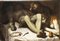 Nella notevole tela inedita qui in oggetto, di raro patetismo, si propone di individuare una possibile aggiunta a questo gruppo omogeneo di opere. La costruzione della scena presenta chiare analogie e non meno evidente variazioni rispetto alla redazione con tre dolenti: lo scorcio qui non è più rigidamente frontale ma è reso leggermente obliquo, cosicché il corpo di Cristo è posto diagonalmente mentre viene dato pieno risalto al gesto devoto di Maddalena (che, in primo piano, bacia la mano sinistra di Gesù sostituendosi così all’Evangelista delle altre versioni) e, appena dietro di lei, all’espressione eclatante di disperazione di Giovanni. Oltre ai due chiodi e al vasetto di unguenti, la nostra versione esibisce in primo piano anche la corona di spine e soprattutto, con una soluzione di potente tragicità, lascia un lungo chiodo conficcato sulla mano destra di Cristo, lasciando nella penombra i volti di Maria Vergine e del Salvatore.