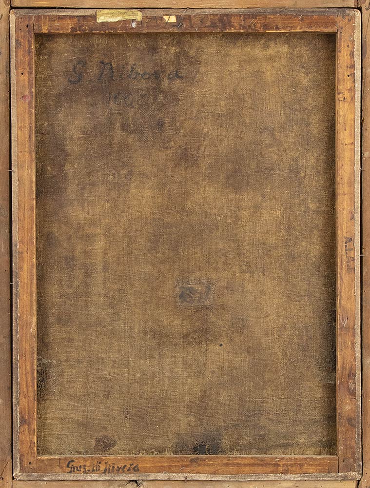Il dipinto è in prima tela e reca al retro iscrizione antica a pennello: "C. RIBERA 16…".