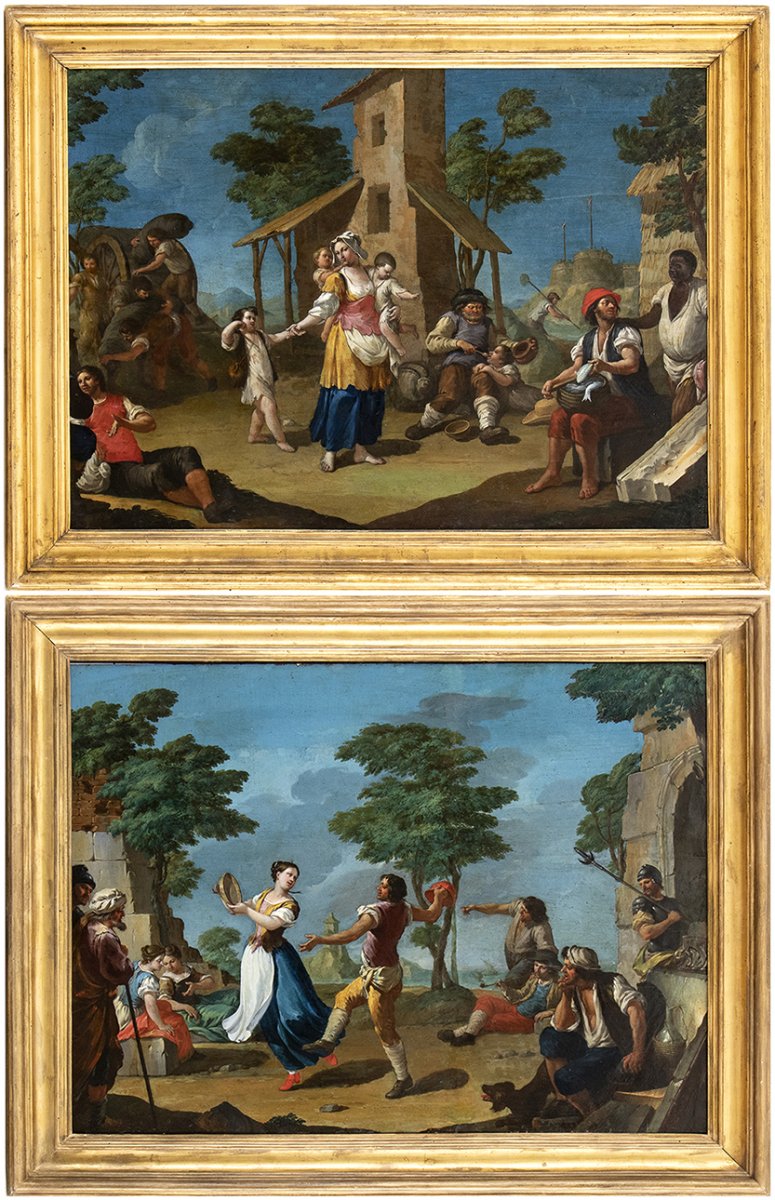 La coppia di tele è accompagnata da un'Expertise del Prof. Giancarlo Sestieri che attribuisce i dipinti ad Andrea Locatelli.