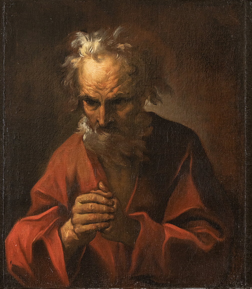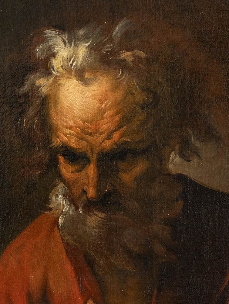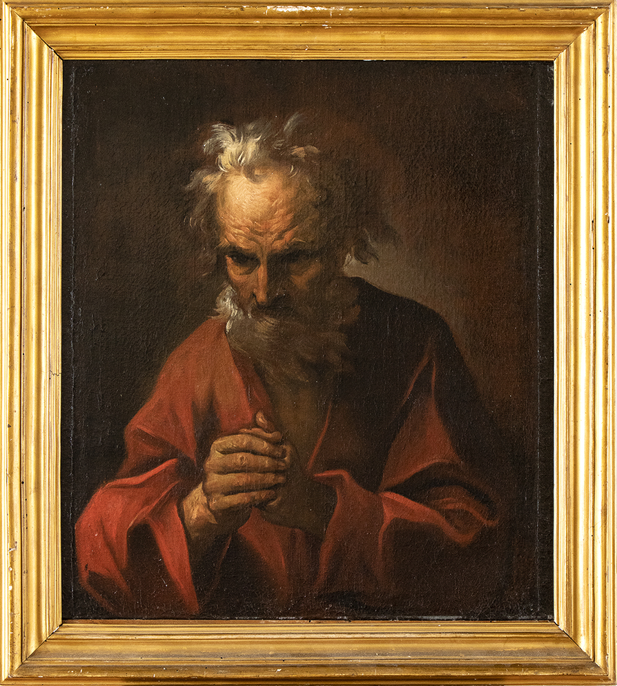 Questa notevole figura a mezzo busto di vecchio privo di attributi specifici rappresenta un intrigante quesito attributivo oltreché iconografico (potrebbe trattarsi, infatti, tanto di un profeta, quanto di un eremita, un filosofo o un apostolo). Risulta qui evidente una cultura figurativa in cui si fondono un approccio fondamentalmente naturalista, una pennellata rapida e sciolta, una resa coloristica brillantemente pittorica, arricchita di sapienti lumeggiature, ma anche l’aggiornamento sui principali coevi modelli fiamminghi. Una simile miscela di elementi può essere rilevata in artisti diversi attivi in area veneta dopo la metà del Seicento, quali Francesco Maffei, Antonio Zanchi e Antonio Carneo.