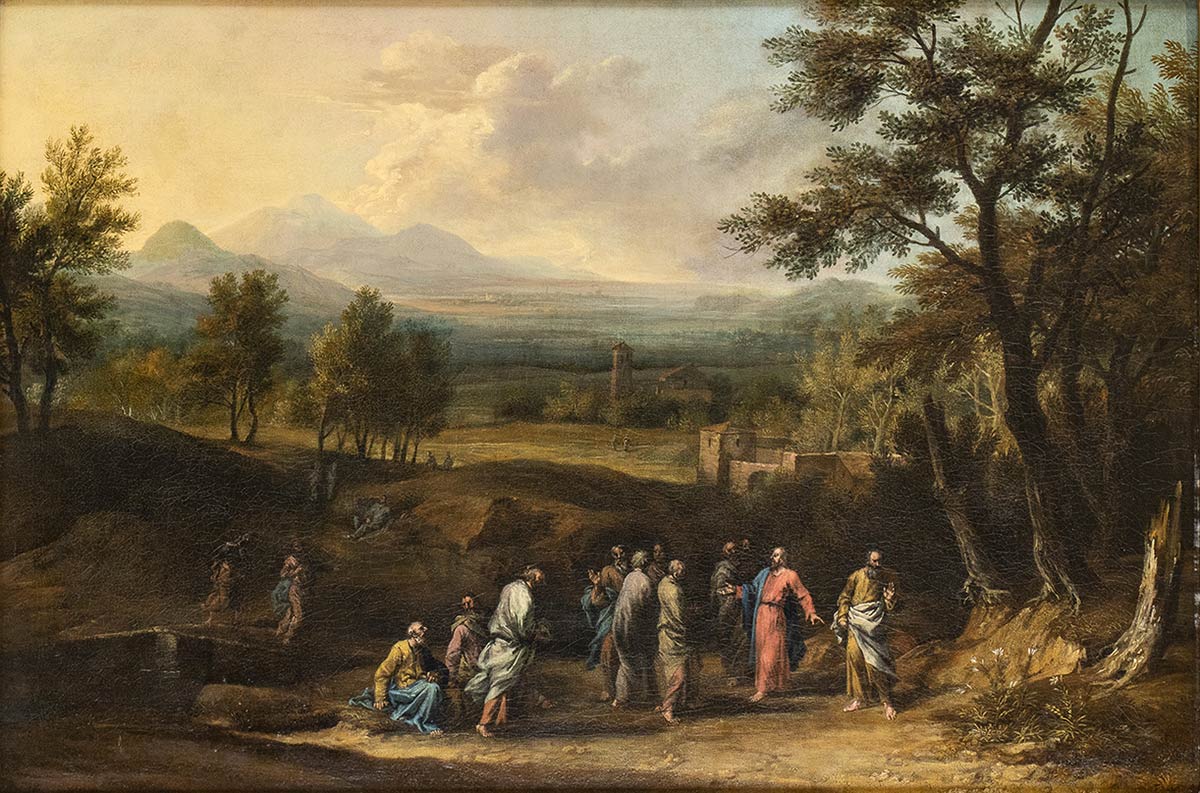 Franz Joachim Beich, pittore di corte del principe elettore di Baviera, Massimiliano II Emanuele, mostrò fin dalla formazione giovanile una particolare inclinazione nei confronti del paesaggio, genere di cui nel corso della carriera propose una formulazione influenzata dalla pittura fiamminga e olandese e caratterizzata da una personale rielaborazione di motivi pittoreschi appresi durante il soggiorno decennale in Italia. Utili confronti si possono istituire con il Paesaggio montano con cascata del Kunthistorischen Museum di Vienna.