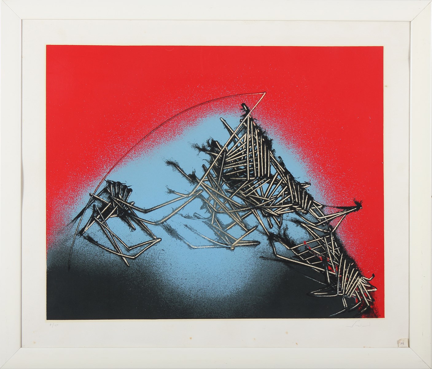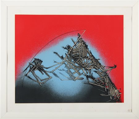 SCANAVINO EMILIO (1922 - 1986) Senza titolo. Litografia. Cm 71,00 x 60,00. Misure lastra:50x62cm. Tir. 81/125 e firma in basso a matita. Cornice presente