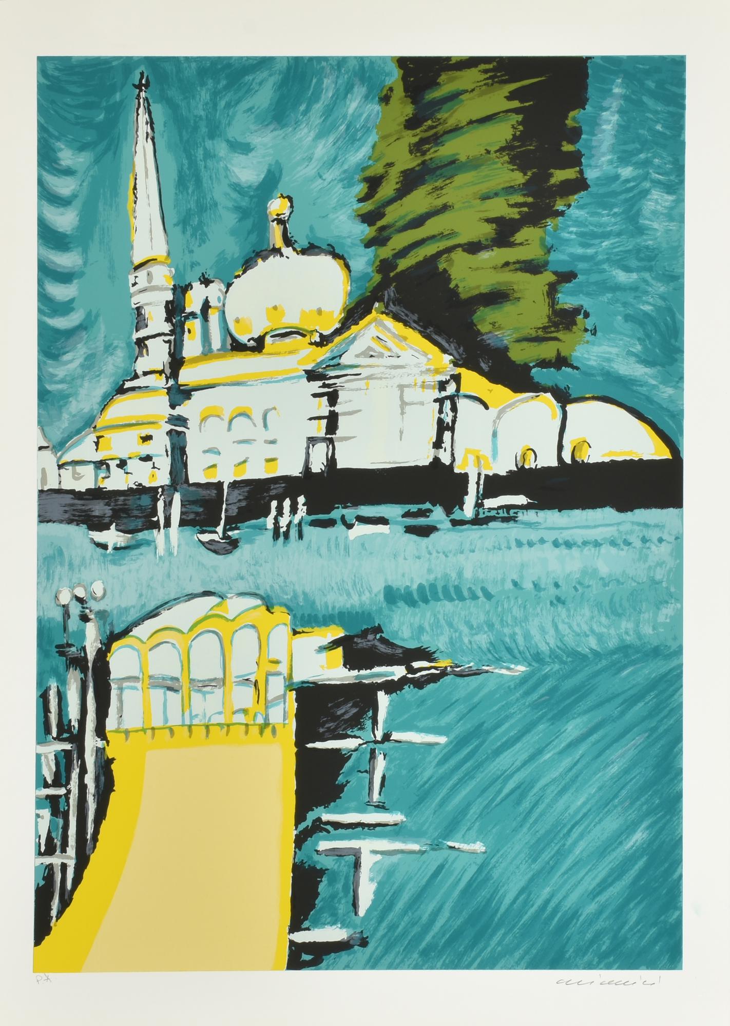 Remo Brindisi ISOLA S. GIORGIO MAGGIORE serigrafia su carta, cm 70x50; es....