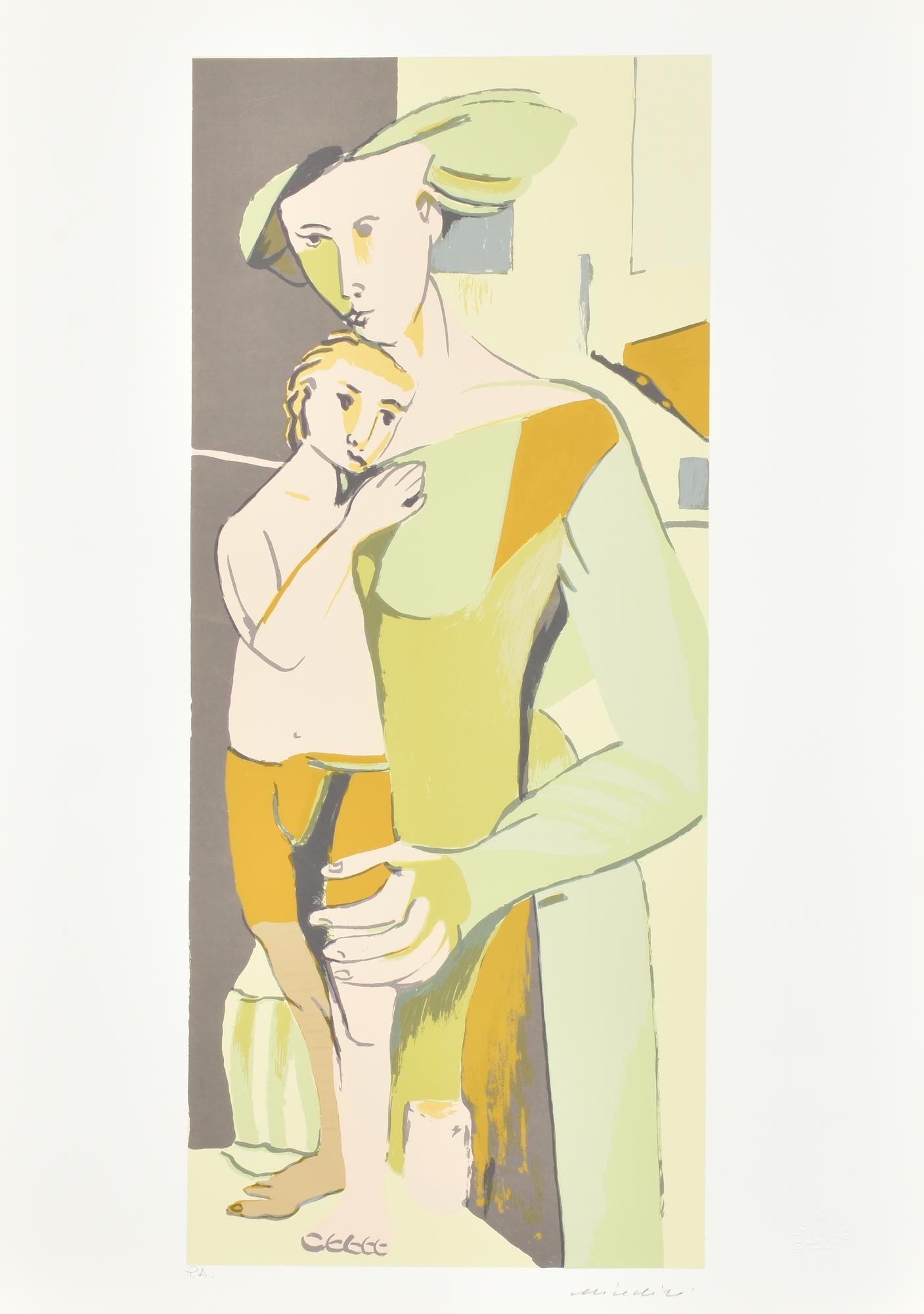 Remo Brindisi MADRE CON BAMBINO serigrafia su carta, cm 70x50; es. P.A. firma