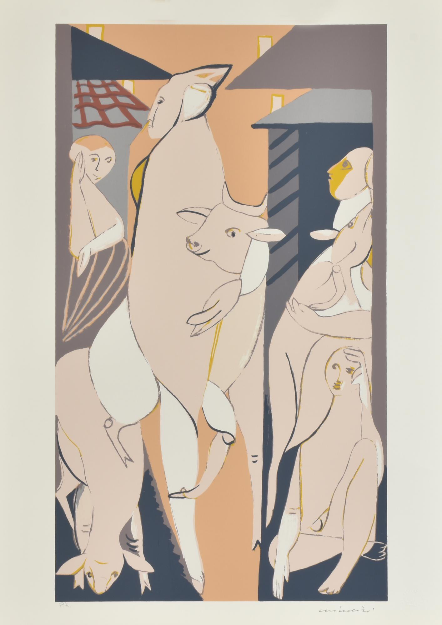 Remo Brindisi FIGURE E ANIMALI serigrafia su carta, cm 70x50; es. P.A. firma
