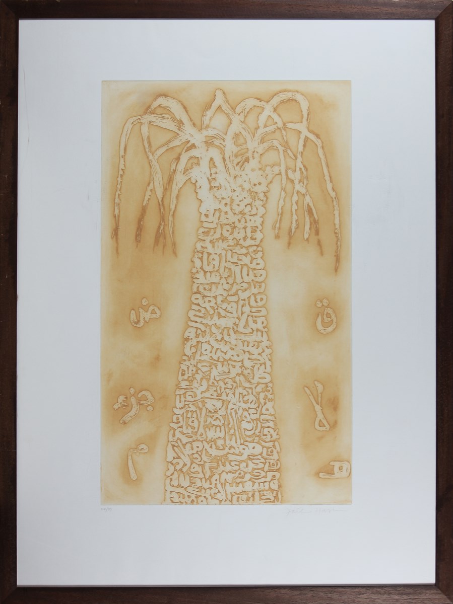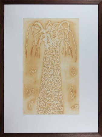 HASSAN FATHI (n. 1957) Senza titolo. Litografia. Cm 99,00 x 133,00. Misure disegno: 99x59cm. Tir. 27/99 e firma in basso a matita. Al retro timbro Oprandi Arte Contemporanea, Fino del Monte (BG) e catiglio International Fair for Contemporary art, Innsbruck. Cornice presente