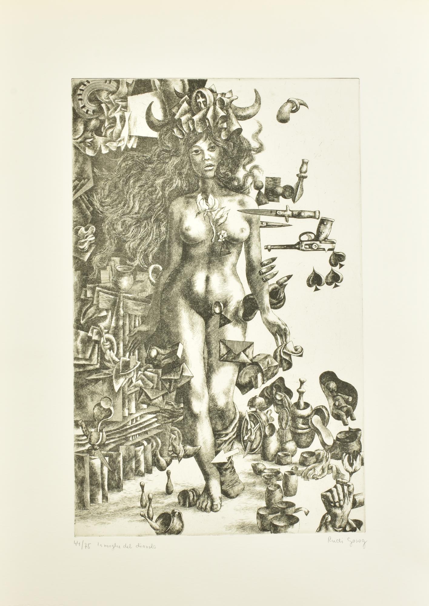 Rudi Gorog LA MOGLIE DEL DIAVOLO incisione su carta fabriano, battuta cm...