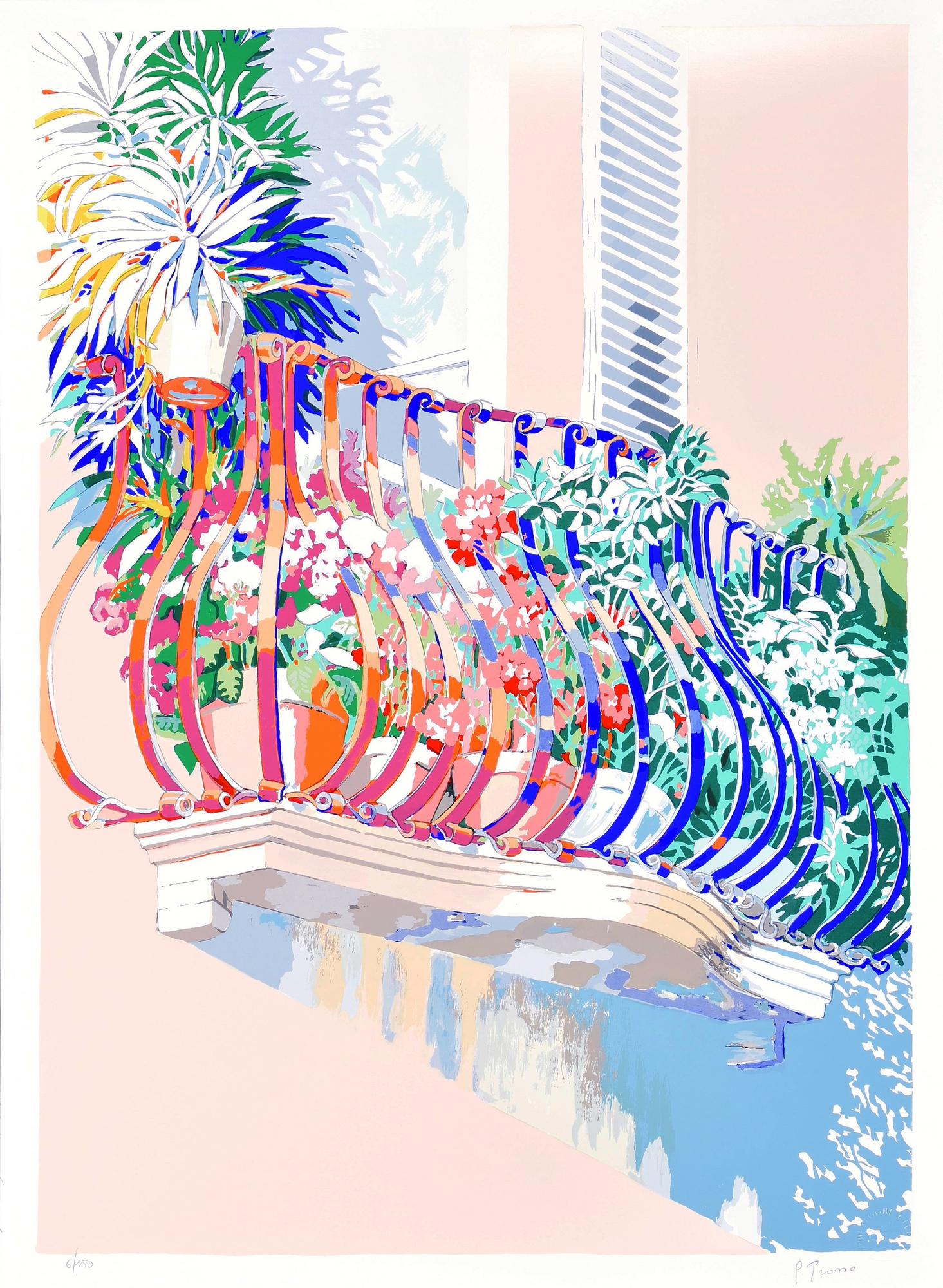 Giuseppe Grosso BALCONE FIORITO serigrafia su carta, cm 70x50; es. 6/150 firma