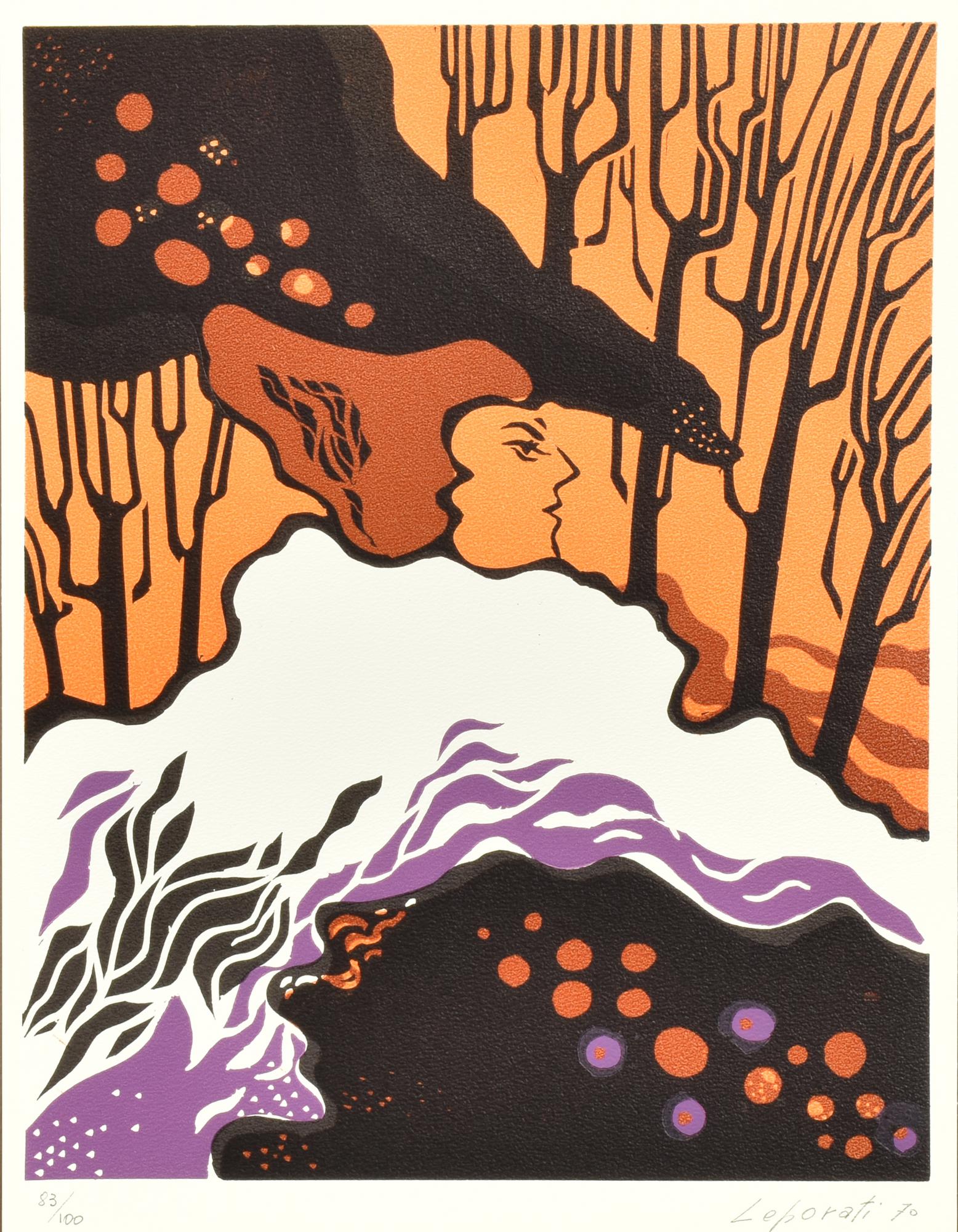 Leporati PROFILO DI DONNA incisione su carta, cm 33,5x26; es. 83/100 firma e...