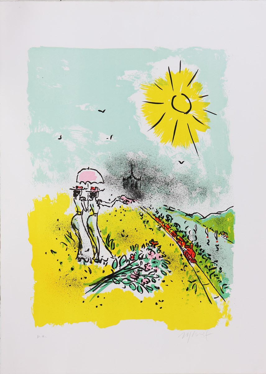 ROGNONI FRANCO (1913 - 1999) Senza titolo. Litografia. Cm 50,00 x 70,00. Misure lastra: 53x39cm. P.A. e firma in basso a matita.