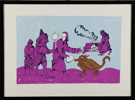 LUCEBERT (1924 - 1994) Senza titolo. 1973. Litografia. Cm 75,00 x 55,00. Misure lastra; 40x60,5cm. Tir. 118/200, firma e data in basso a matita. Cornice presente