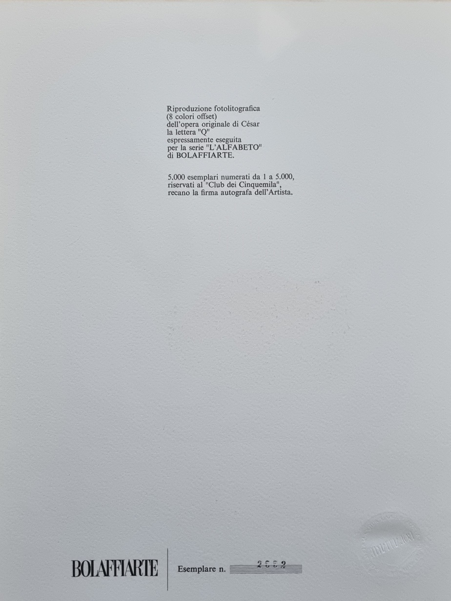 CÉSAR Marseille (France) 1921 Q 1973 Fotolitografia 30,00x23,50 Certificato...