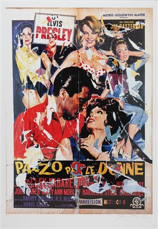 ROTELLA MIMMO (1918 - 2006) Pazzo per le donne. Litodecollage. Cm 70,00 x 100,00. Misure lastra: 90x63cm. P.A. e firma in basso a matita. Timbro a secco Fondazione Rotella, Milano in basso a sinistra. Opera pubblicata nel catalogo Elena Pontiggia, Mimmo Rotella, multiples dècollages, Silvana Editoriale, 2005, pag. 20-21.