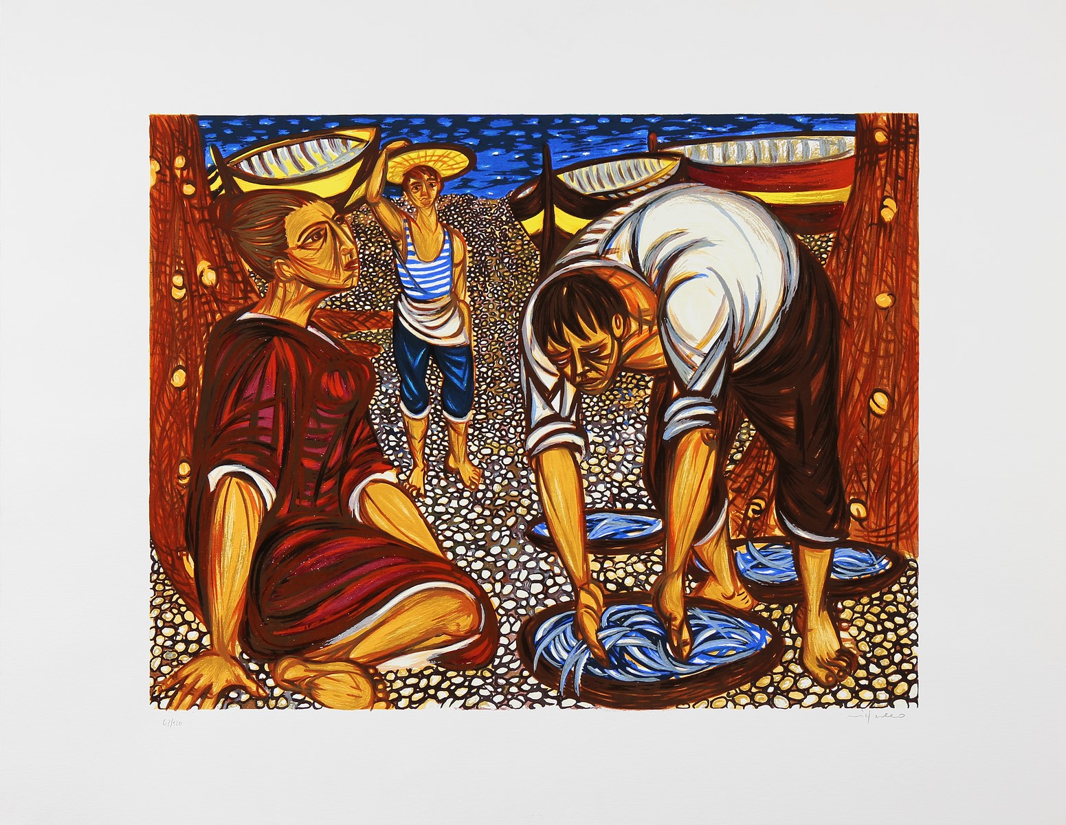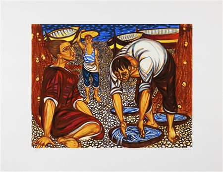MIGNECO GIUSEPPE (1908 - 1997) Senza titolo. Litografia. Cm 100,00 x 70,00. Misure lastra: 50x64,5cm. Tir. 63/120 e firma in basso a matita. Timbro a secco Botero Arte Contemporanea in basso a destra.