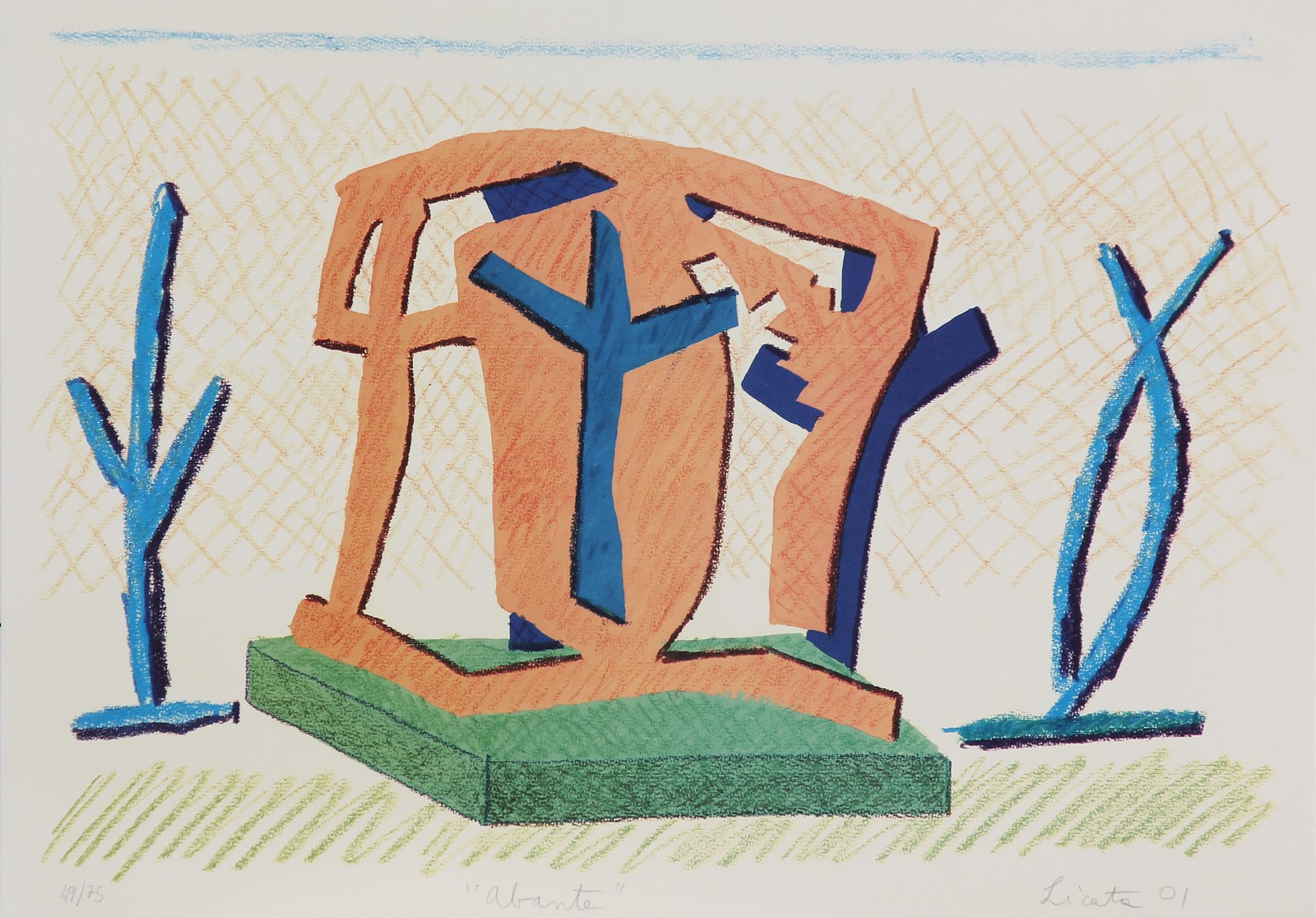 LICATA RICCARDO (n. 1929) Abante. 2001. Serigrafia. Cm 50,00 x 35,00. Misure lastra: 32x47,5 cm. Tir. 50/75, titolo, data e firma in basso a matita. Timbro a secco Tintoretto, Venezia, in basso a destra.