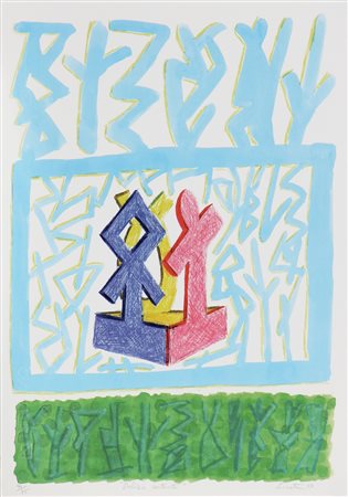 LICATA RICCARDO (n. 1929) Delizie contente. 2001. Serigrafia. Cm 34,00 x 49,00. Misure lastra: 46x32 cm. Tir. 44/75, titolo, data e firma in basso a matita. Timbro a secco Tintoretto, Venezia, in basso a destra.