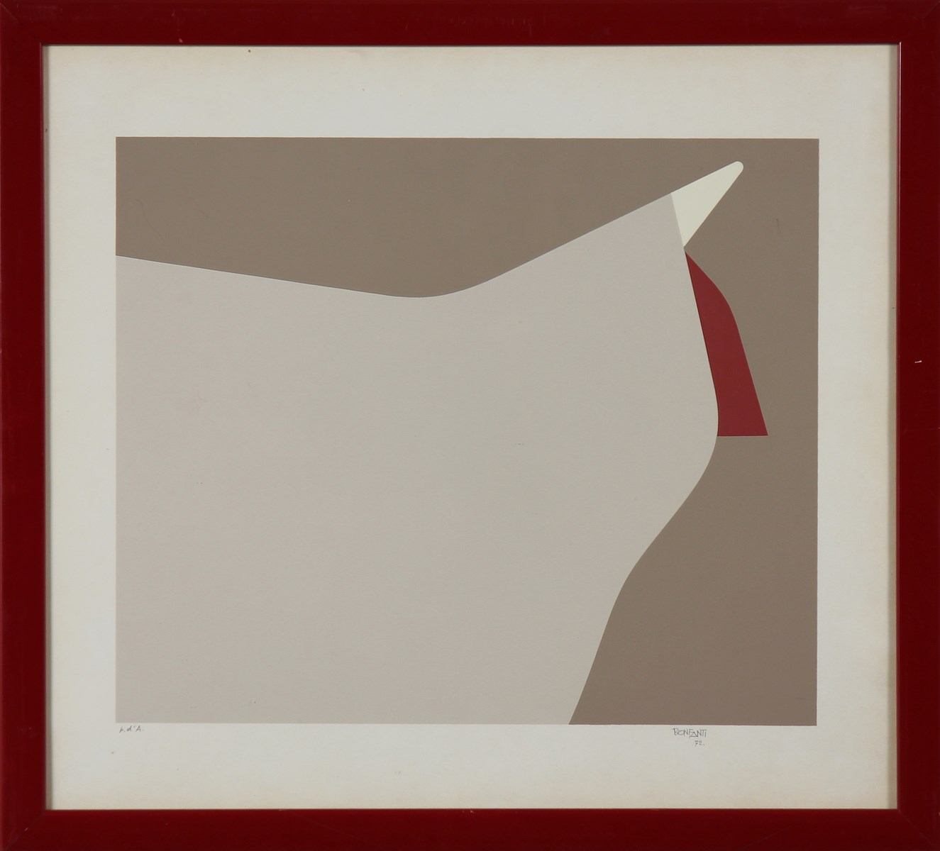 BONFANTI ARTURO (1905 - 1978) Senza titolo. 1972. Serigrafia. Cm 43,00 x 39,00. Misure lastra: 30x35,5cm. Tir. P.D.A., firma e data in basso a matita. Cornice presente