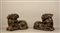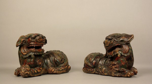 Coppia di sculture in legno laccato raff. ''CANI DI FO''. Cina. XIX secolo. Mis. Lung. cm. 24 Alt. cm. 16 Prof. cm. 9 ca.