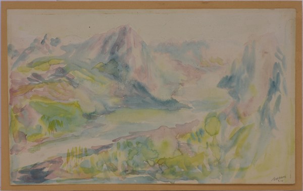 Aligi Sassu "Senza titolo (Paesaggio e Natura morta)" due acquerelli su carta c