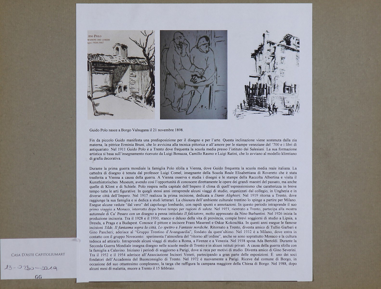 POLO GUIDO (1898 - 1988) Senza titolo. China su carta. Cm 23,00 x 15,00. Siglato in basso. Al retro cartiglio descrittivo della vita dell'artista. Cornice presente