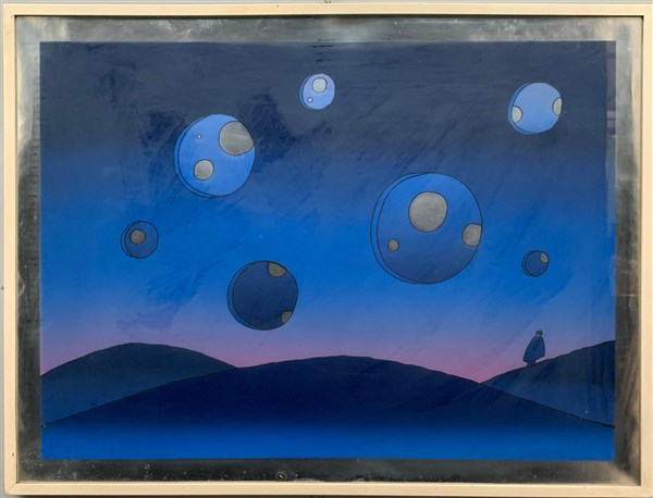 Jean-Michel Folon "Senza titolo" serigrafia su carta argentata cm 60x81 firmata