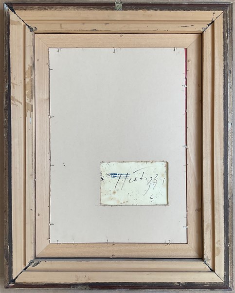 firmato in basso a sinistra; firmato al retro. In cornice